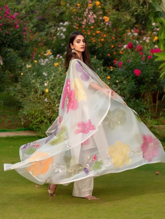Dry Clean Only. Do Not Wash. Do Not Wring Or Twist. Store In A Cool, Dry Place Away From Direct Sunlight. Keep Away From Moisture And Perfumes. Handle With Care To Preserve Embroidery And Embellishments. Iron On Low Heat On Reverse Side If Needed, Avoiding Direct Contact With Embroidered Areas. Fold Carefully To Prevent Creasing Of Delicate Organza Fabric.