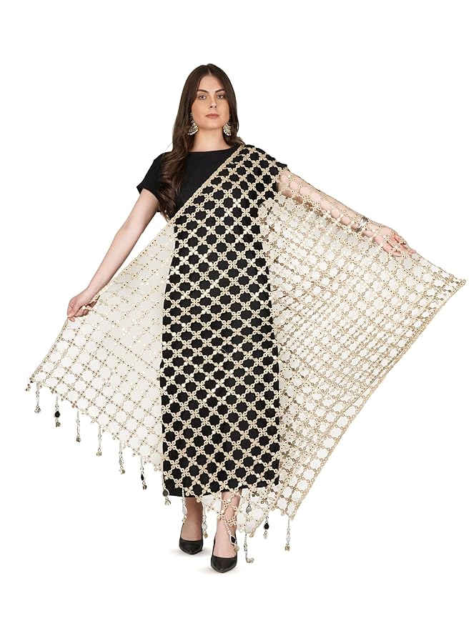 - Color:Gold, Dupatta Work: Foil Mirror Embroidery with Fancy Latkan